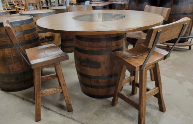 Our hand crafted whiskey barrel collection is constructed of genuine whiskey barrels. This collection features tables, cabinets and accessories, perfect for a man cave, game room or dining room. Whiskey barrels are crafted from American white oak and the insides are charred wich leaves them black.