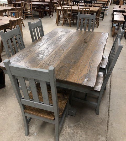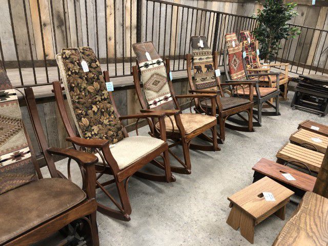 Hickory and oak are known for their color variations, grain patterns, and characteristic knots. When these woods, in raw stick form and in board form, are gathered and assembled by an experienced Amish craftsman, the resulting piece of furniture is an eye-catching piece of functional, rustic art for any room in your home. Baker’s offers a huge selection of rustic, Amish-crafted furniture. We will also work with you to custom make the perfect piece for your home. Listed below is a sampling of items that are in stock or can be ordered.