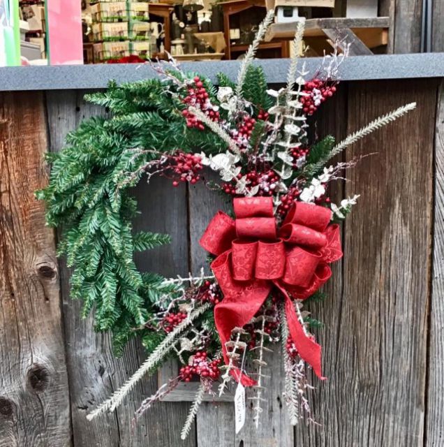 Baker’s also offers a selection of live ball and burlap Christmas trees, as well as live wreaths, garland, pine bunches, and poinsettias. We craft hand-made bows out of a variety of Christmas and winter ribbon, too. Listed below are some of the holiday items that are available at Baker’s, but to really appreciate the staff’s creativity and hard work, you should visit the holiday display in person!